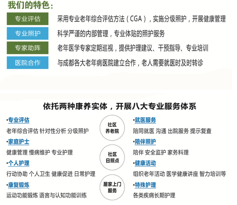 成都怡倍康養(yǎng)老服務有限公司是一家按照“康養(yǎng)結(jié)合”模式運營的專業(yè)化養(yǎng)老機構。我們與四川大學華西醫(yī)院老年醫(yī)學中心合作,專注于社區(qū)養(yǎng)老,并在實踐中堅持關注老年人身心健康。